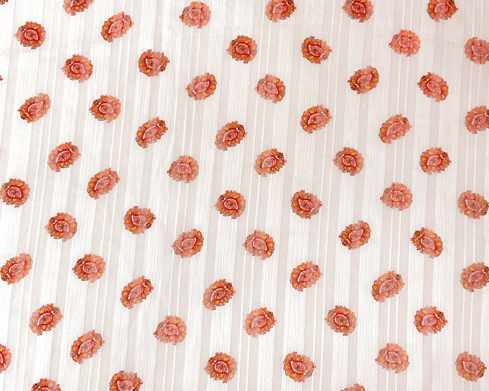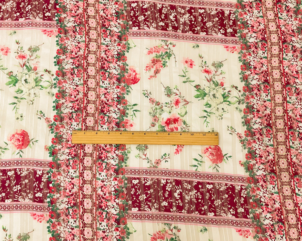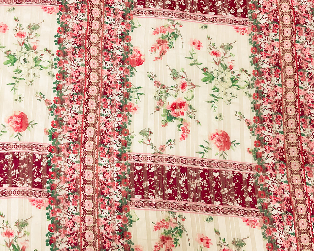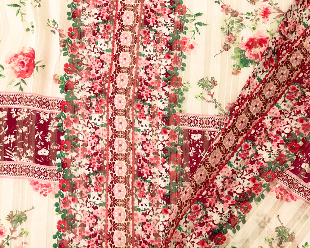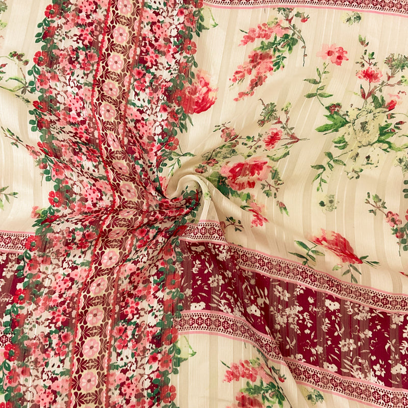 Red-Multi Poly Stripe Floral Print Yoryu Chiffon Woven Fabric