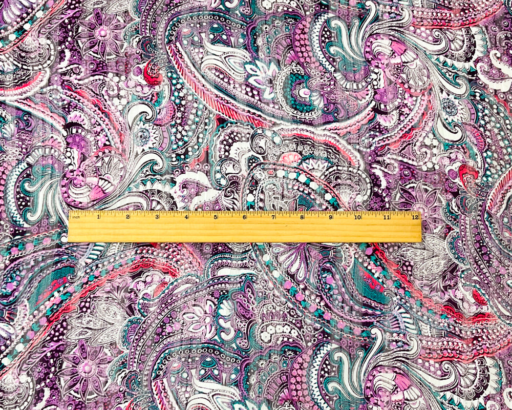 Purple-Multi Poly Paisley Print Satin Stripe Chiffon Woven Fabric