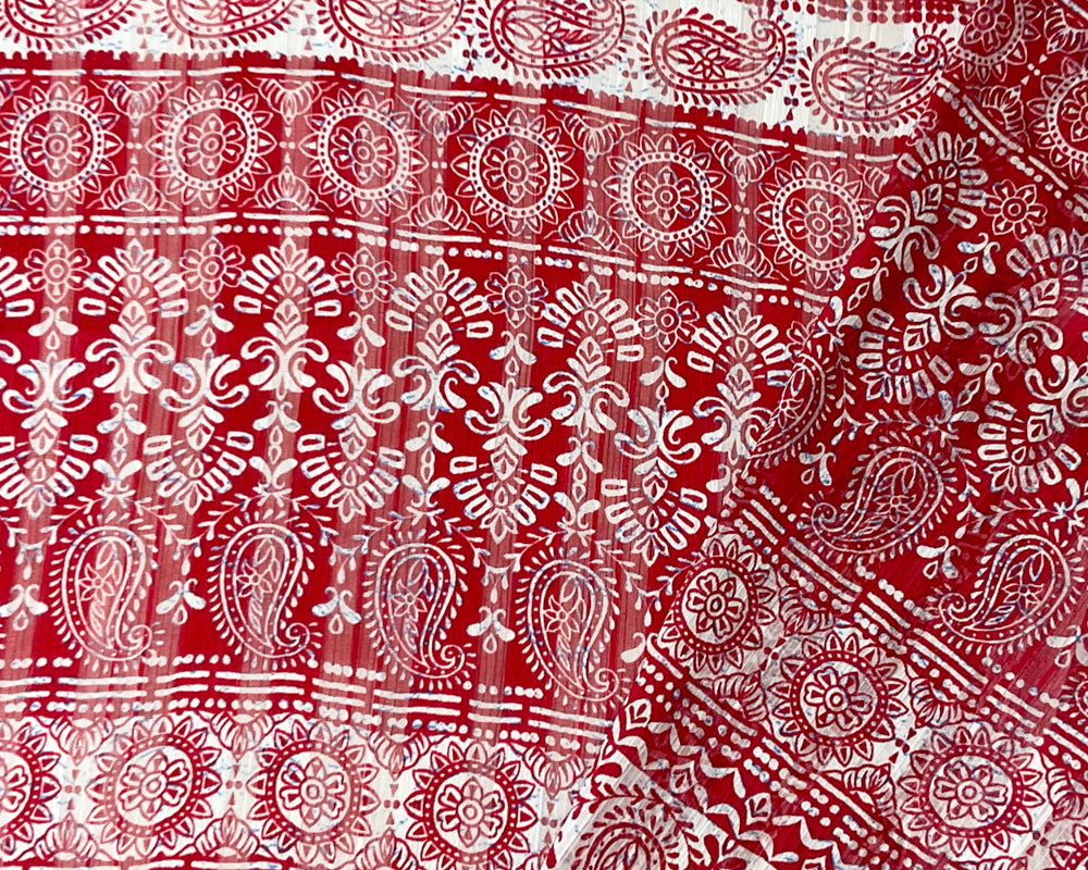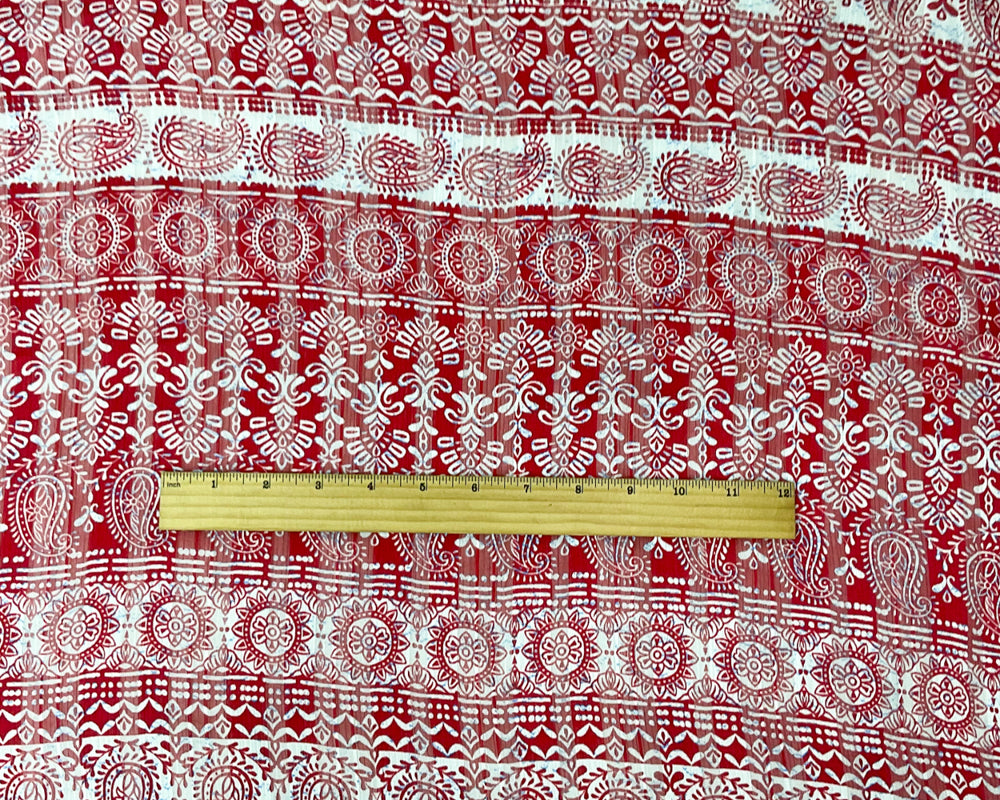 Red-Multi Stripe Paisley Print Satin Stripe Chiffon Woven Fabric