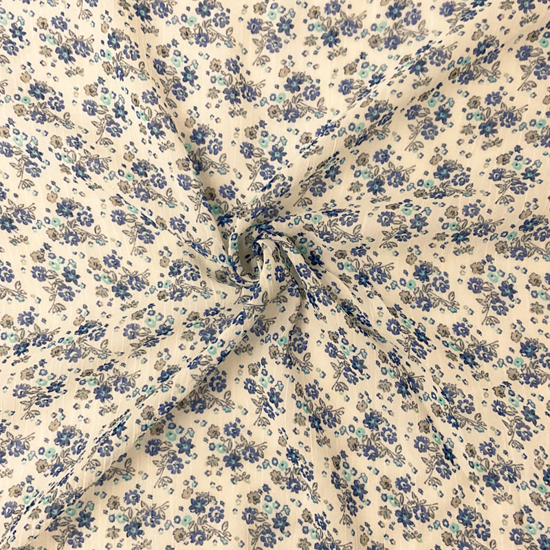 Blue-Multi Poly Floral Printed Slub Chiffon Woven Fabric