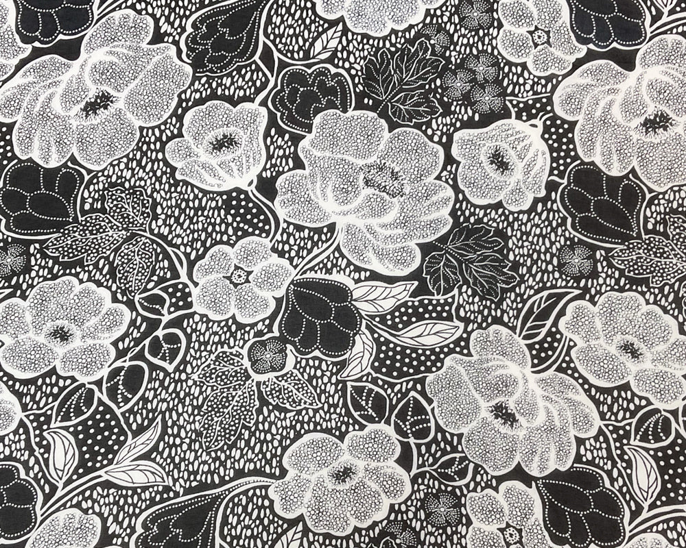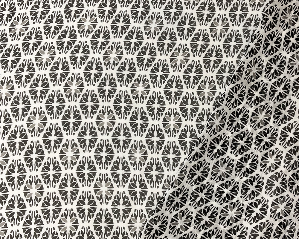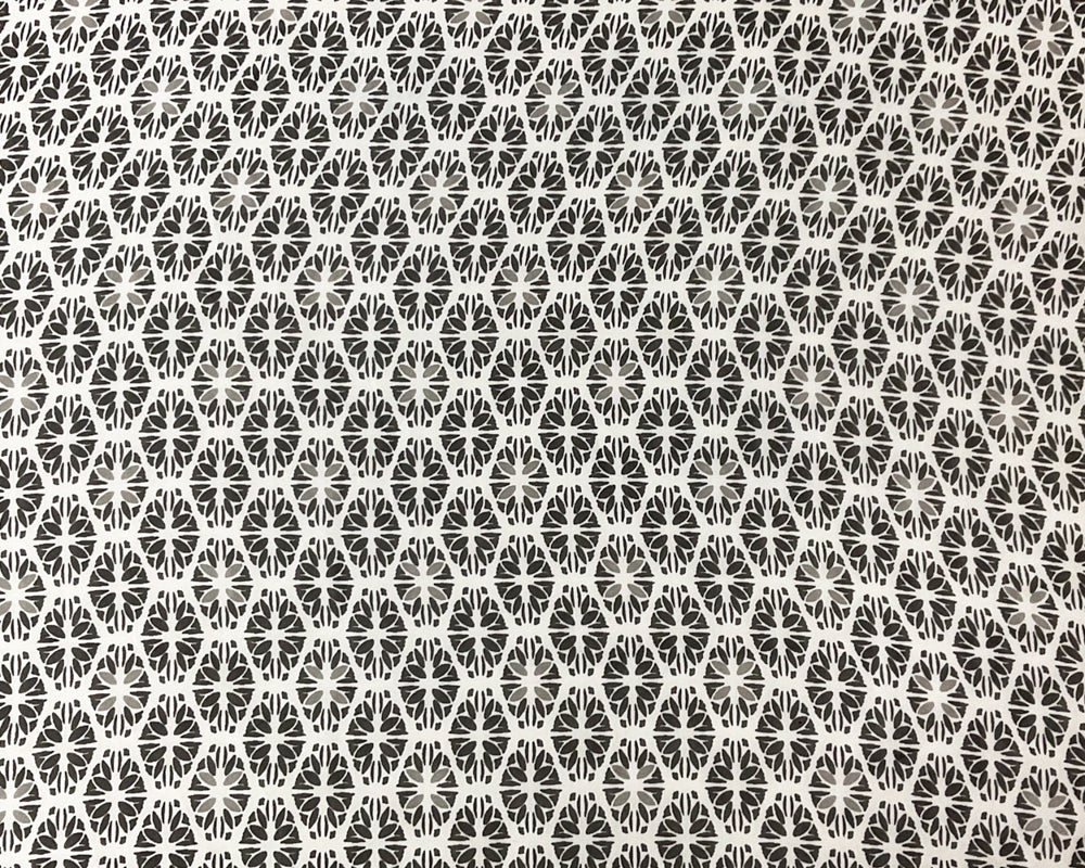 Black-White-Gray Poly Tile Floral Printed Chiffon Woven Fabric