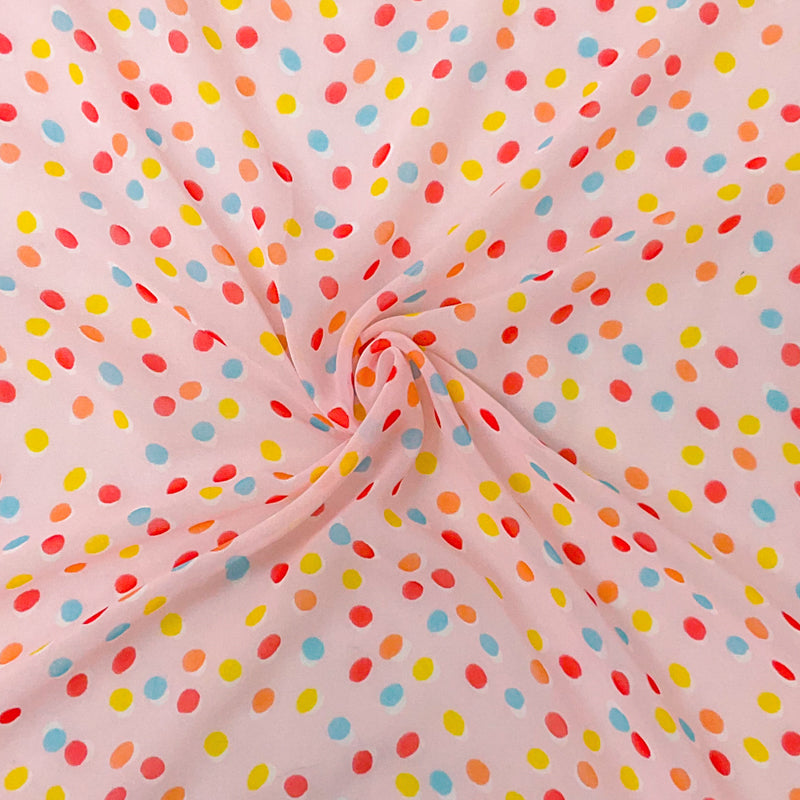 Pink-Blue Multi Poly Dot Printed Chiffon Woven Fabric