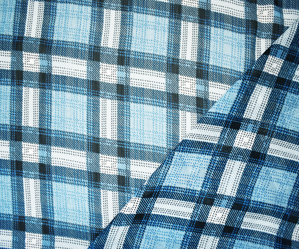 Blue-Black-Multi Poly Plaid Printed Yoryu Chiffon Woven Fabric