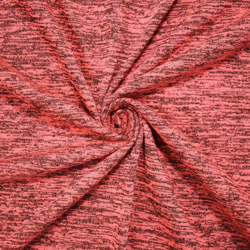 Coral Neon Pink-Black Poly Stretch Spandex Slub Jersey Knit Fabric