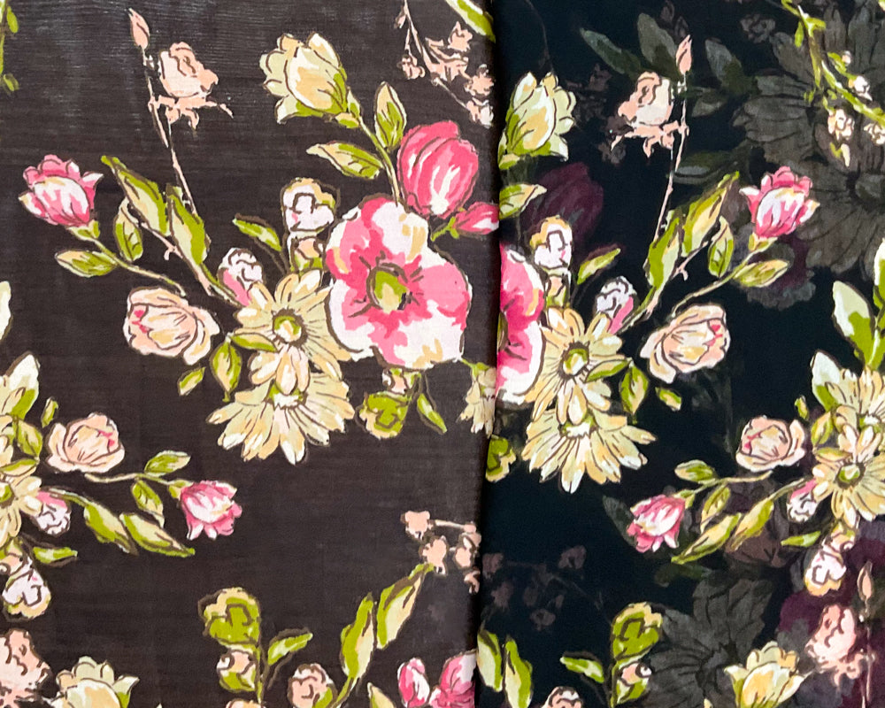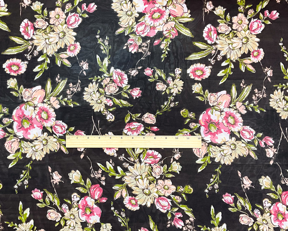 Black-Green-Multi Poly Floral Printed Chiffon Woven Fabric