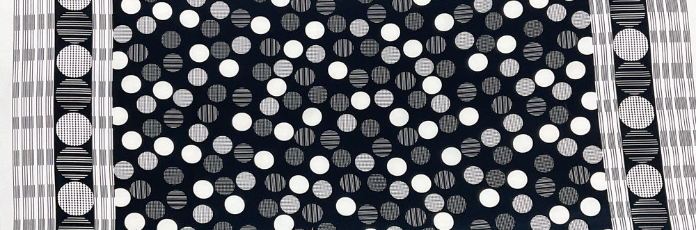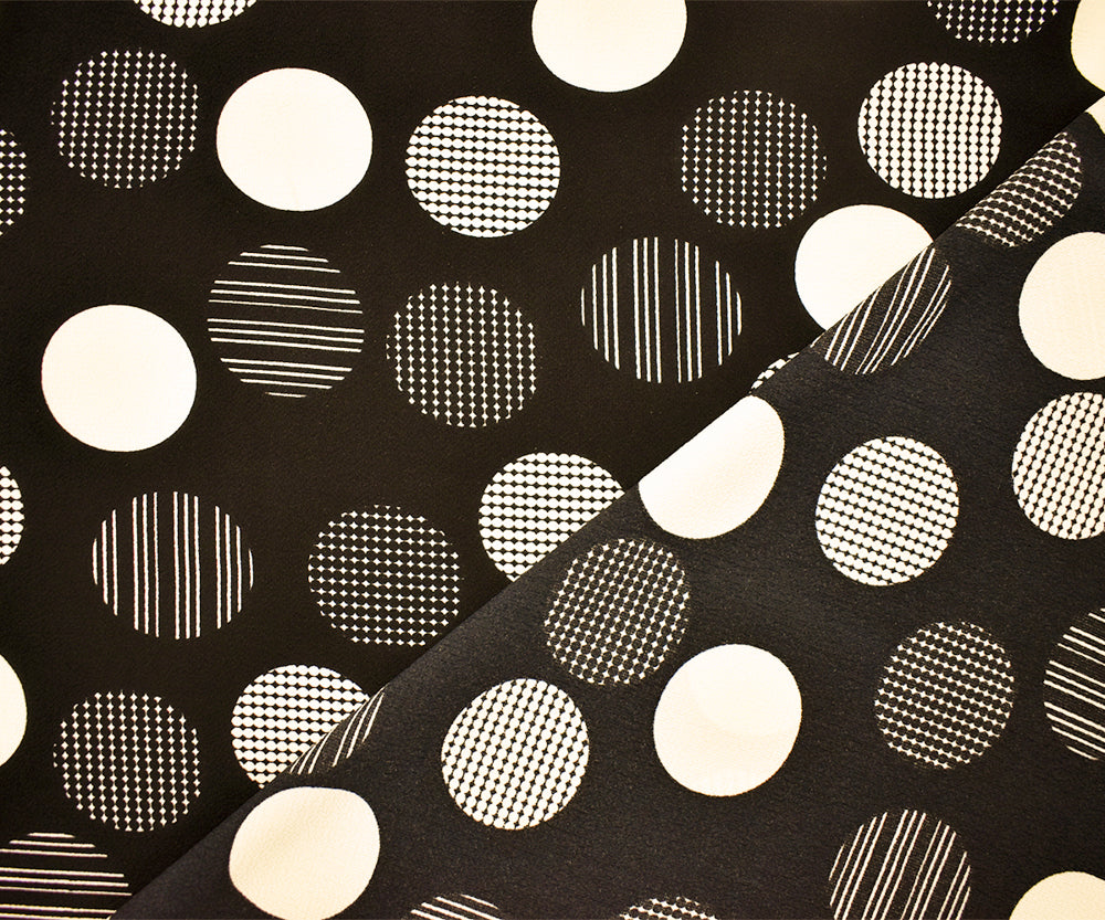 Black-Ivory Poly Circle Abstract Printed Pebble Crepe Woven Fabric
