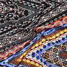 Black-Orange-Multi Poly Aztec Printed Faille Woven Fabric