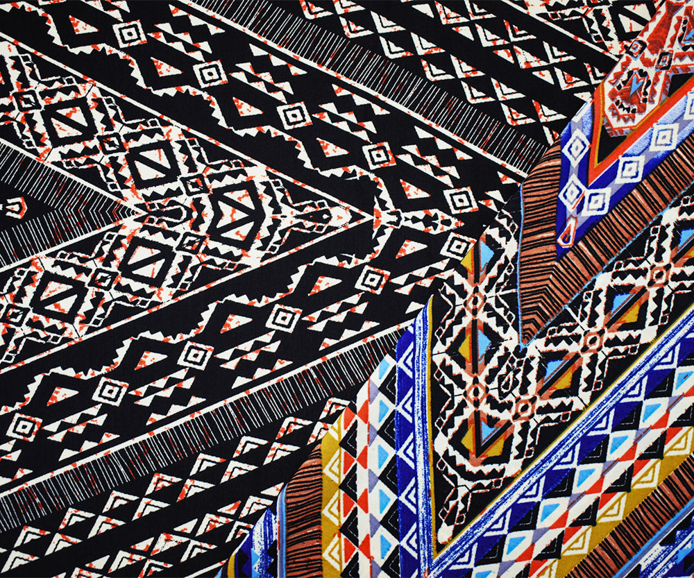 -Black-Orange-Multi Poly Aztec Printed Faille Woven Fabric