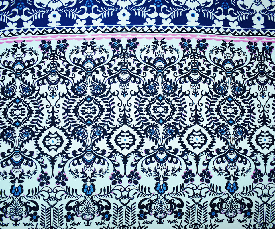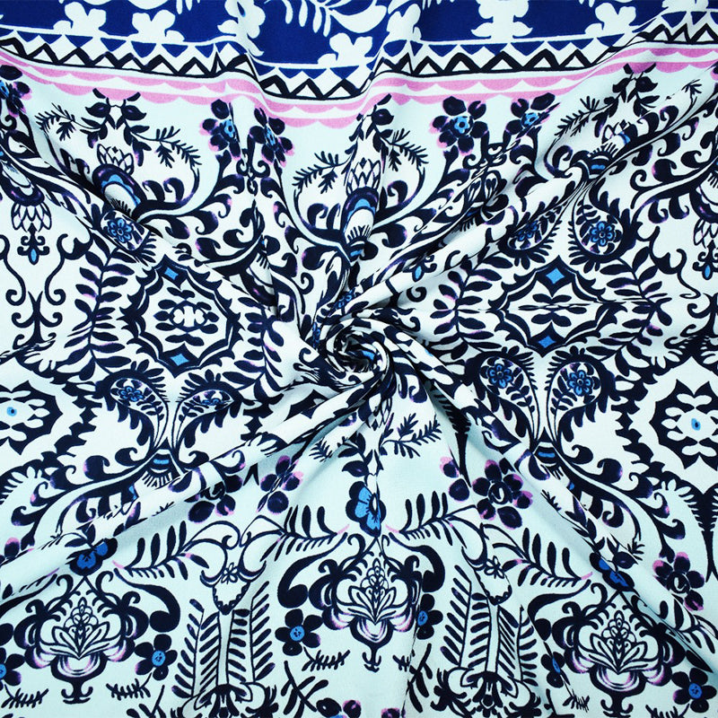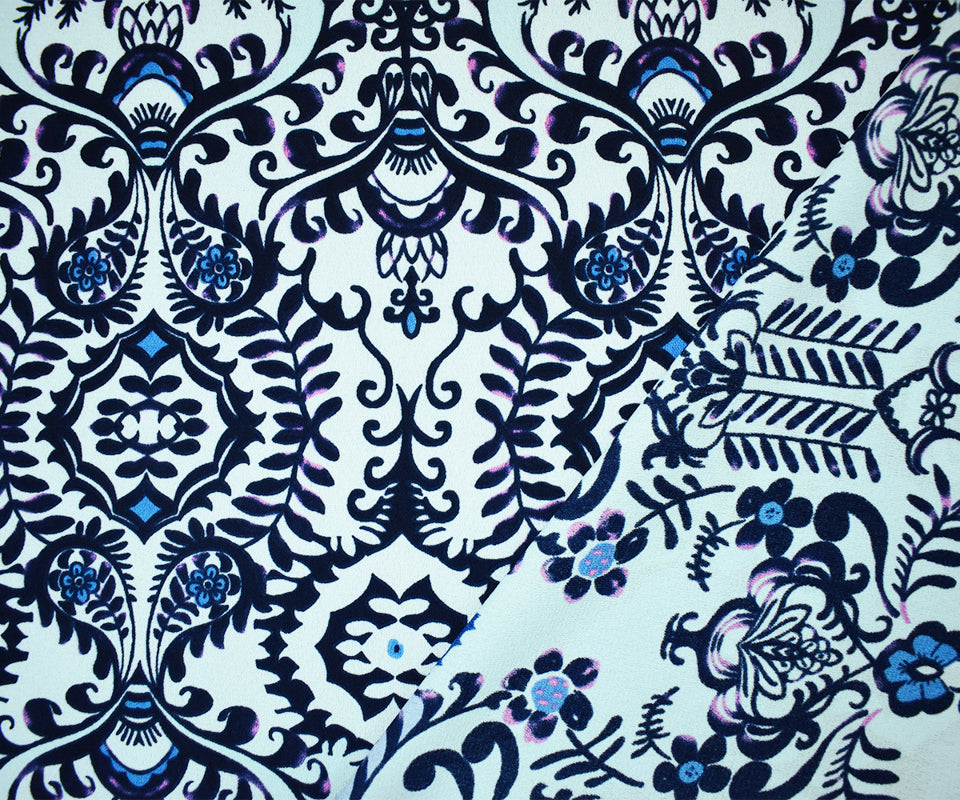 Blue-Multi Poly Abstract Floral Printed Moss Crepe Woven Fabric
