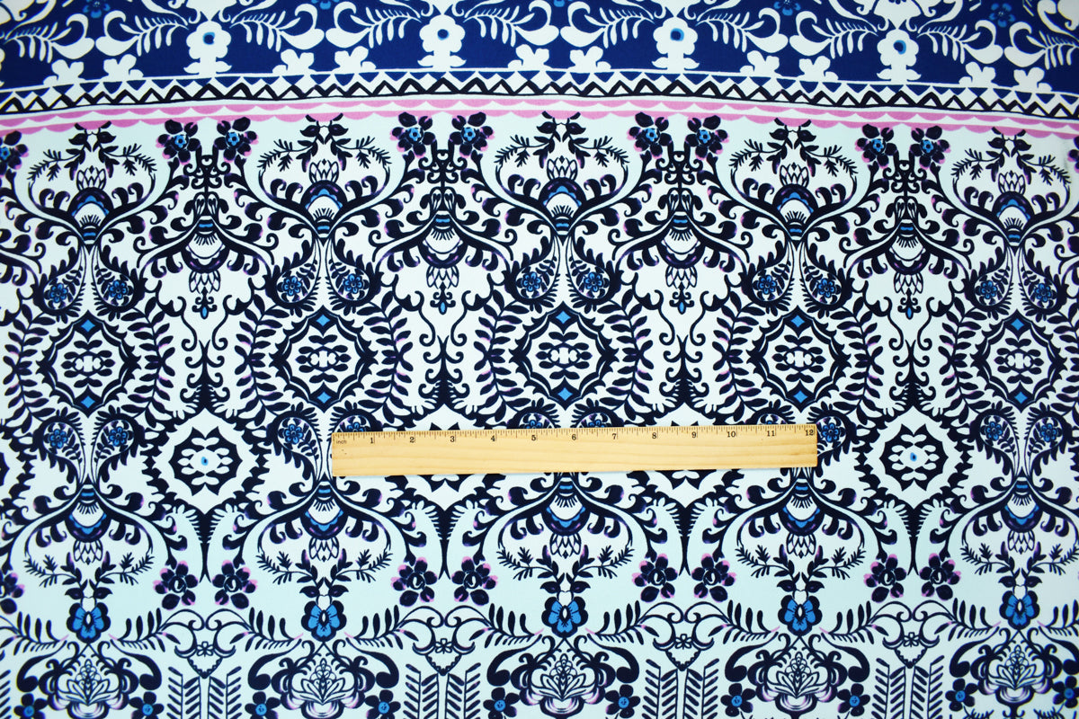 -Blue-Purple-Multi Poly Abstract Floral Printed Moss Crepe Woven Fabric