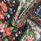 Brown-Green-Multi Chevron Floral Printed Woven Fabric