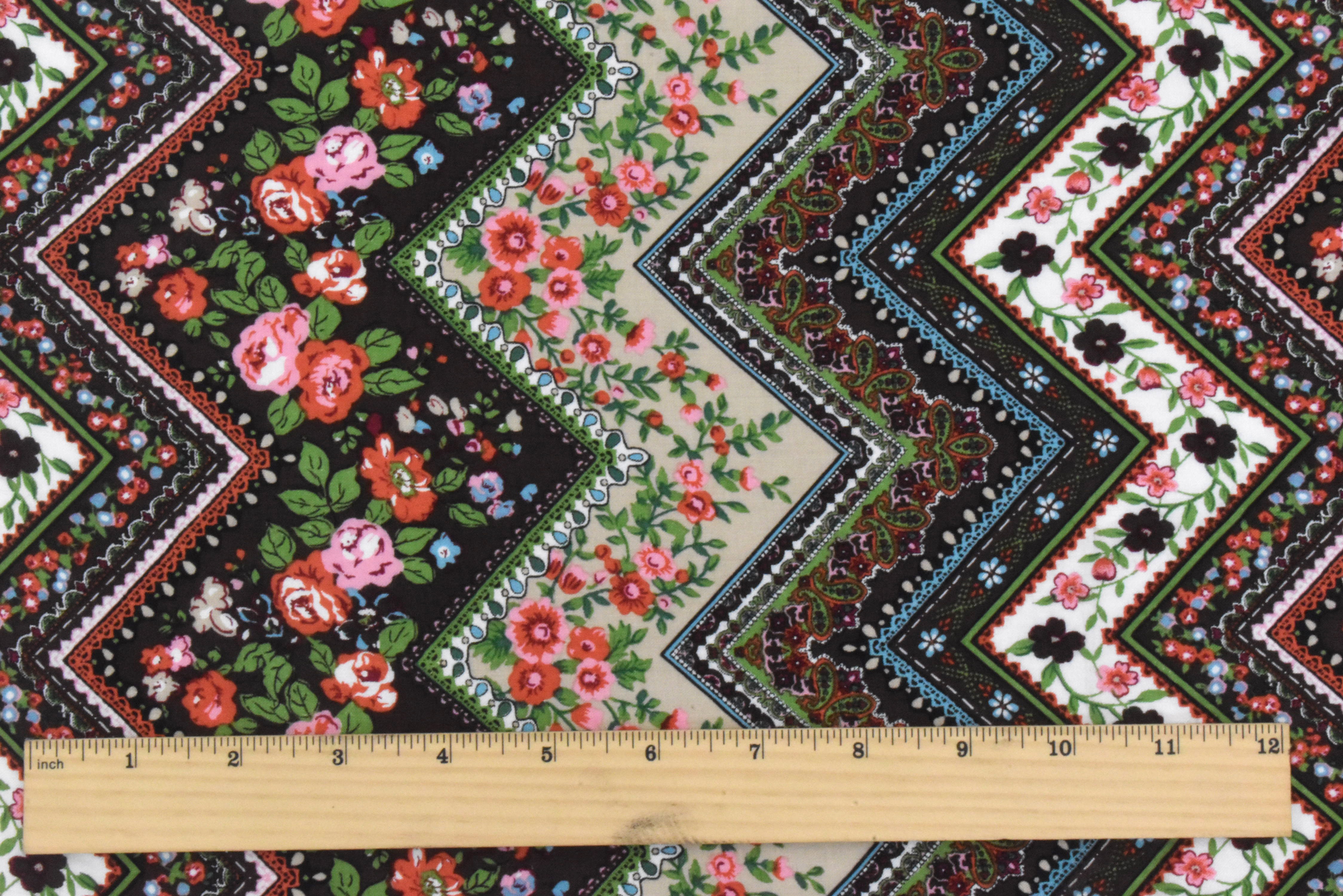 -Chevron floral pattern printed on a woven fabric with a slight stretch