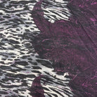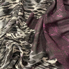 -Black, White, & Gray Zebra Print w/ Burgundy, Purple, & Black Paisley Border Chiffon Fabric