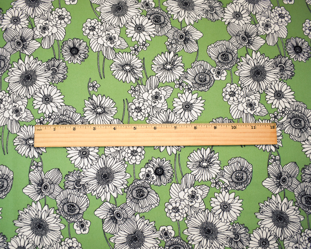 Green-White-Black Poly Floral Printed Crepe Momie Georgette Woven Fabric