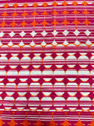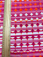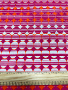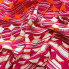 -Hot Pink/White/Orange Dot Diamond Print Georgette Fabric