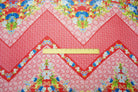 -Orange-Blue-Multi Poly Floral Border Printed Chiffon Woven Fabric