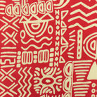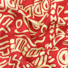 Red-Beige Tribal Symbols Printed Challis Woven Fabric