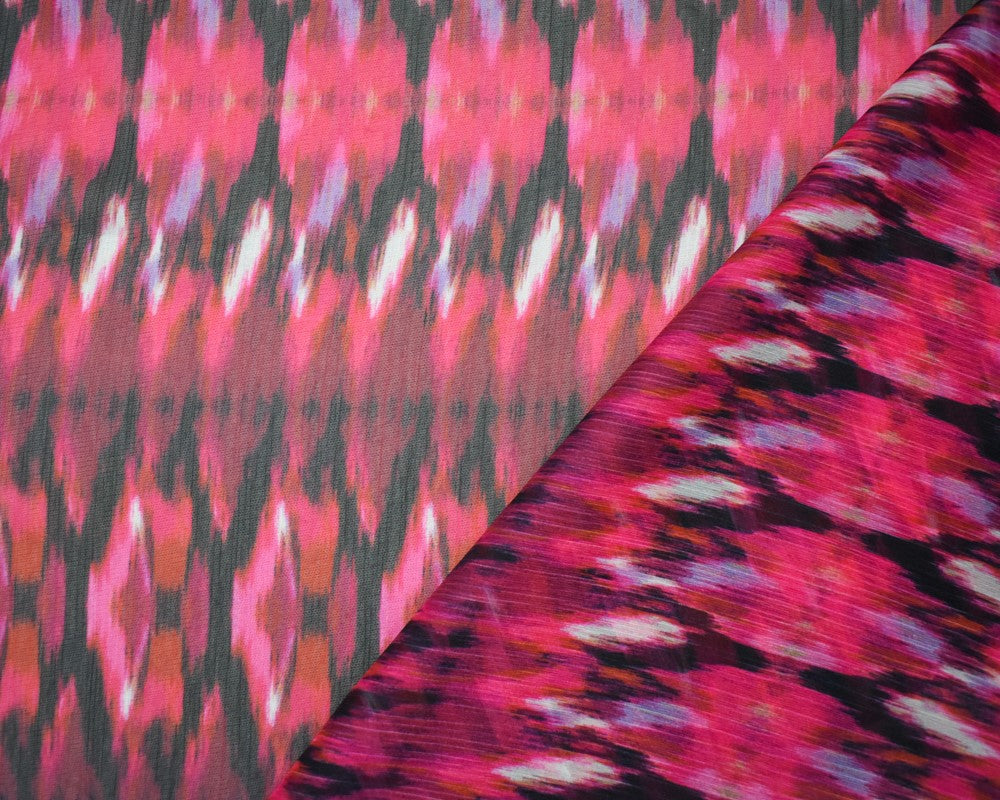 Red-Black-Multi Abstract Printed Crinkle Yoryu Chiffon Woven Fabric