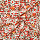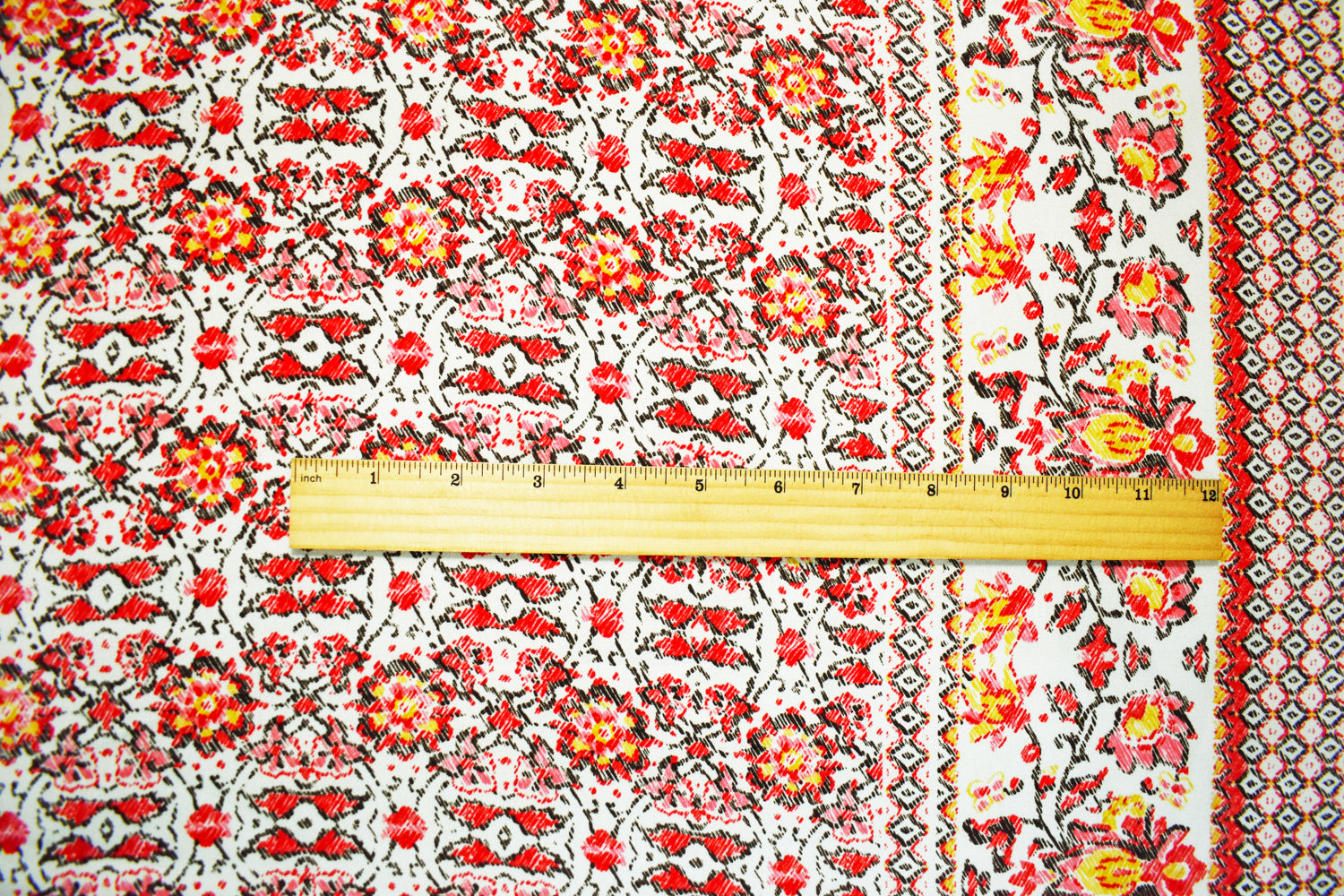 Red-Brown-Multi Poly Floral Trellis Border Pattern Print Crepe Woven Fabric