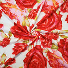 -Red-Pink-Multi Poly Floral Printed Pebble Crepe Woven Fabric