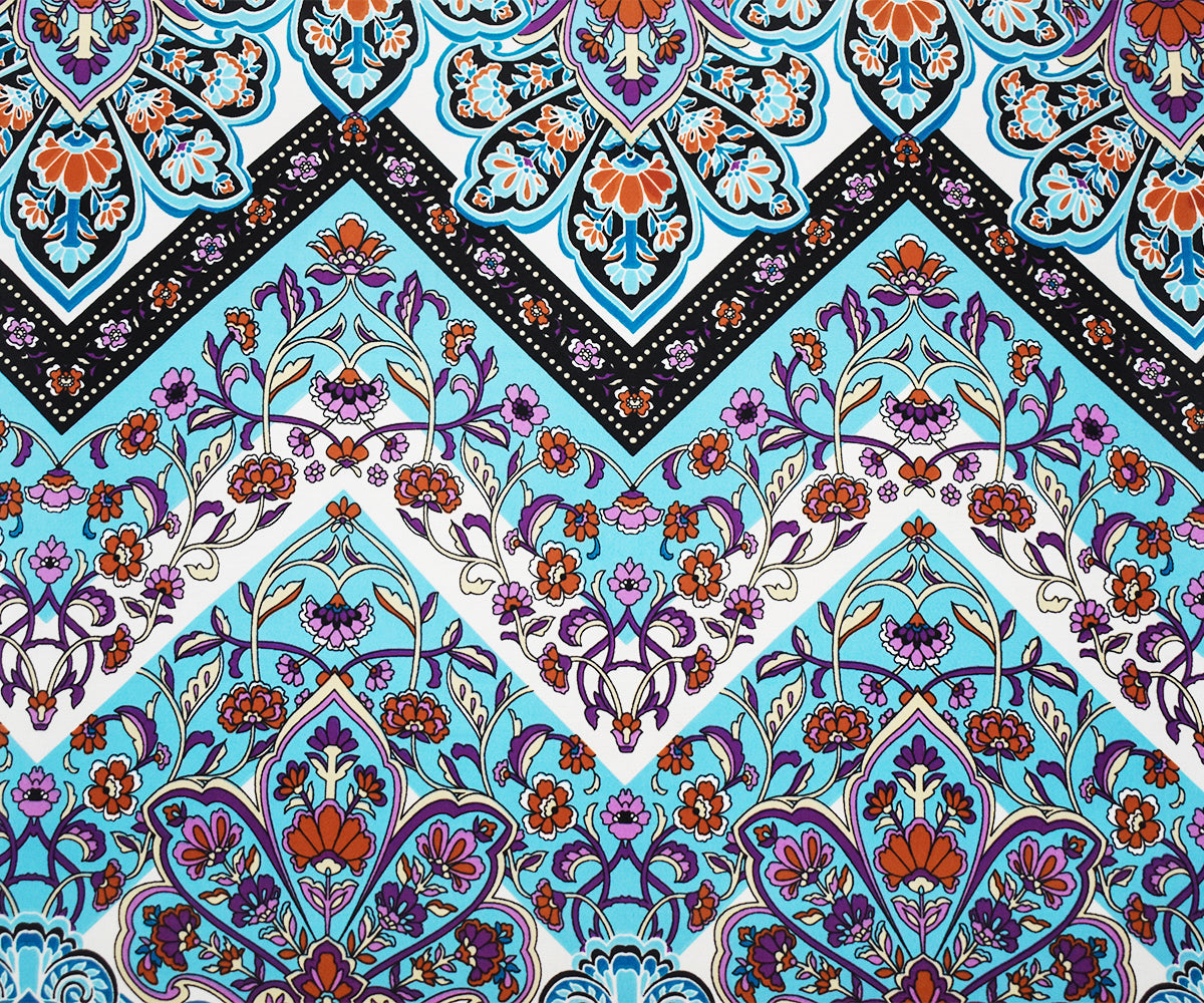 Turquoise-Multi Poly Floral Chevron Printed Georgette Woven Fabric