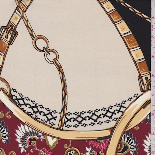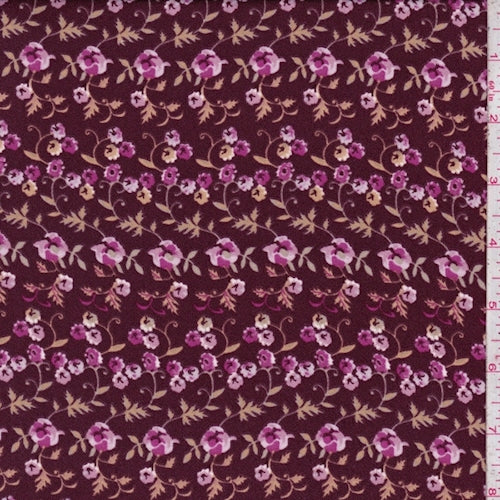 Wine/Fuchsia/Tan Floral Vine Crepe Fabric