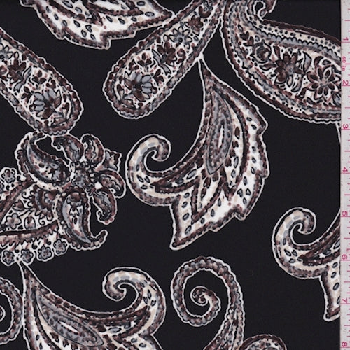Black/White/Brown Medallion Scroll Crepe Georgette Fabric