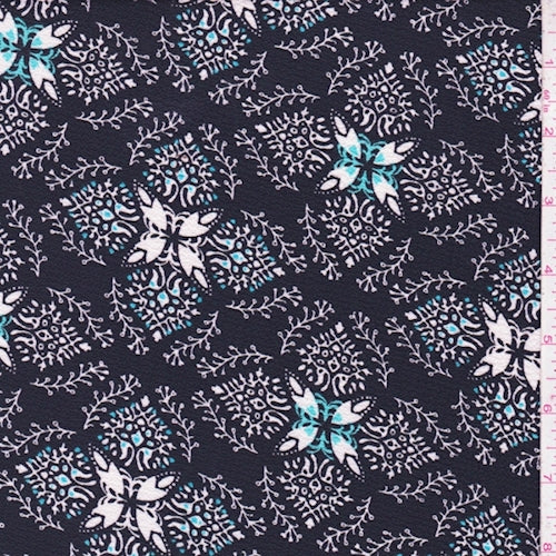 Aquamarine/White Medallion Diamond Rayon Crepe Fabric