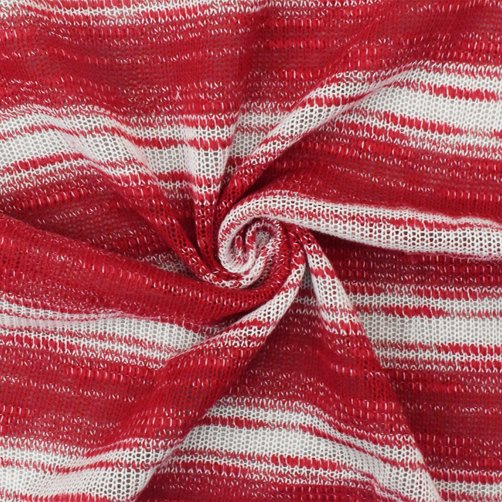 Cane Red-White Stripe Slub Poly Cotton Jersey Knit Fabric