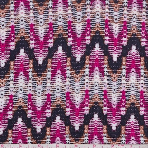 White/Hot Pink/Plum Zig Zag Jersey Knit Fabric