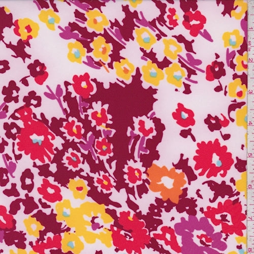 ITY White/Burgundy/Yellow Floral Jersey Knit Fabric