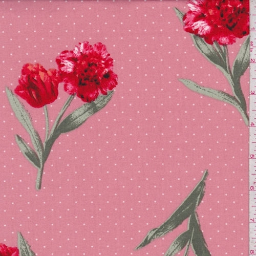 ITY Peach Pink Pin Dot Floral Jersey Knit Fabric
