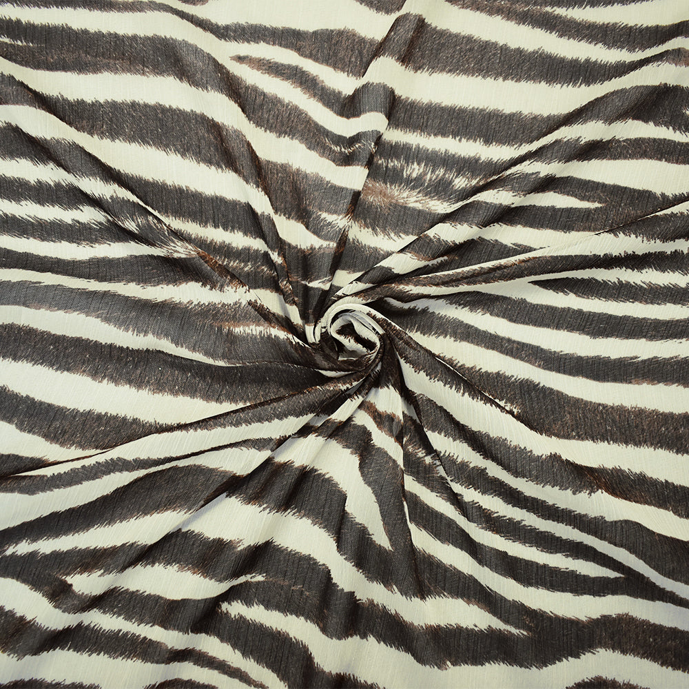 Brown-Beige Poly Tiger Printed Crinkle Yoryu Chiffon Woven Fabric