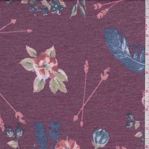 Heather Mulberry/Blue Arrow Floral Double Brushed French Terry Knit Fabric