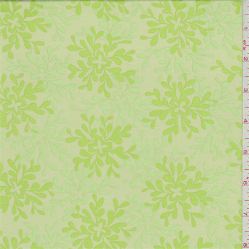 Citrus yellow background with a lime and mint green leaf medallion print ("Leaves" from the Nest Voile collection by Valori Wells). This exceptionally lightweight cotton fabric has a very soft feel.