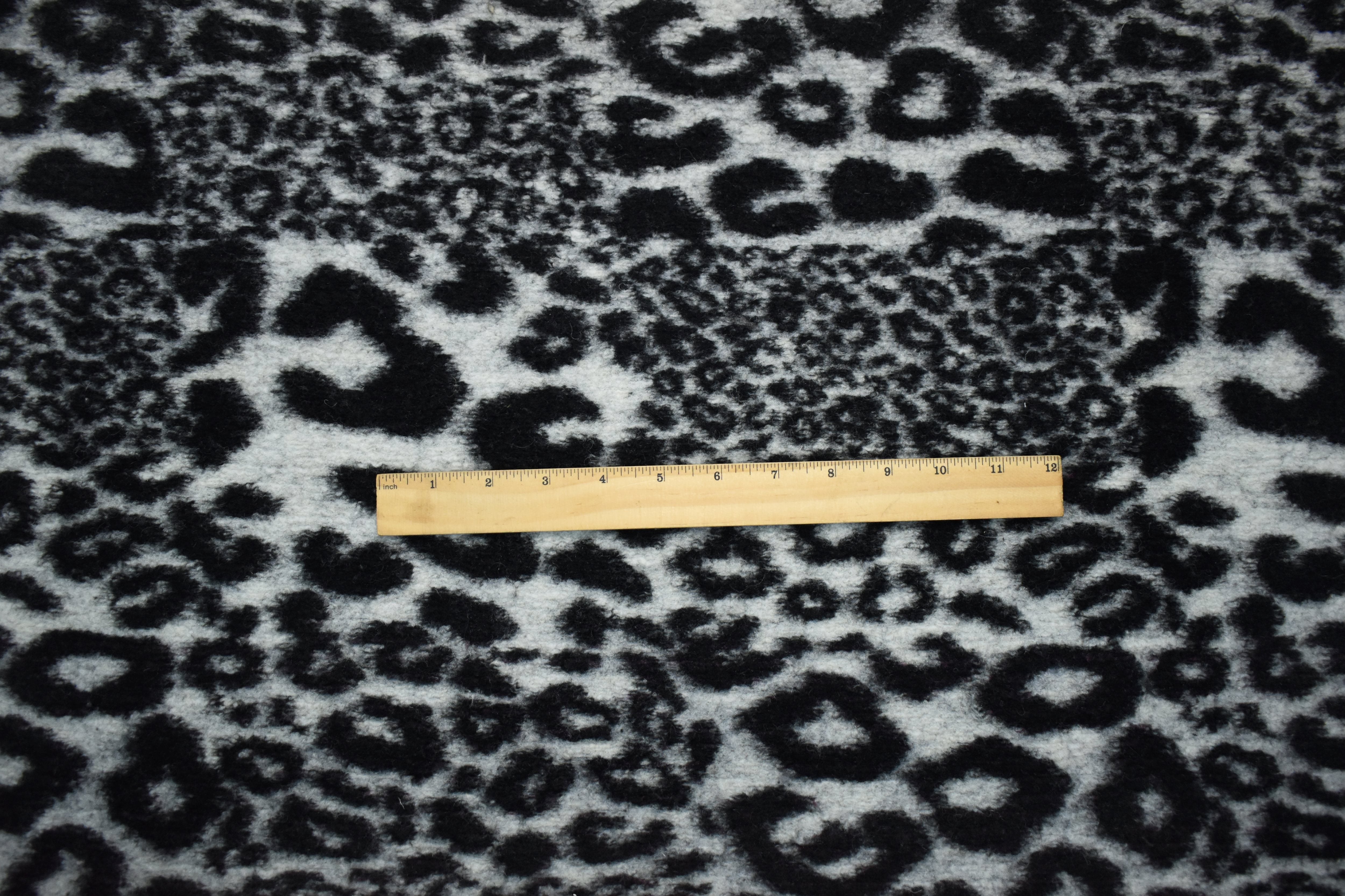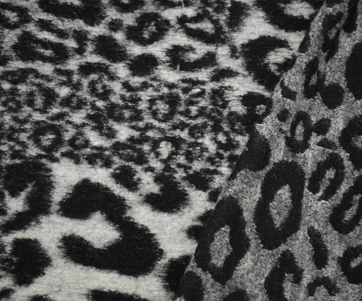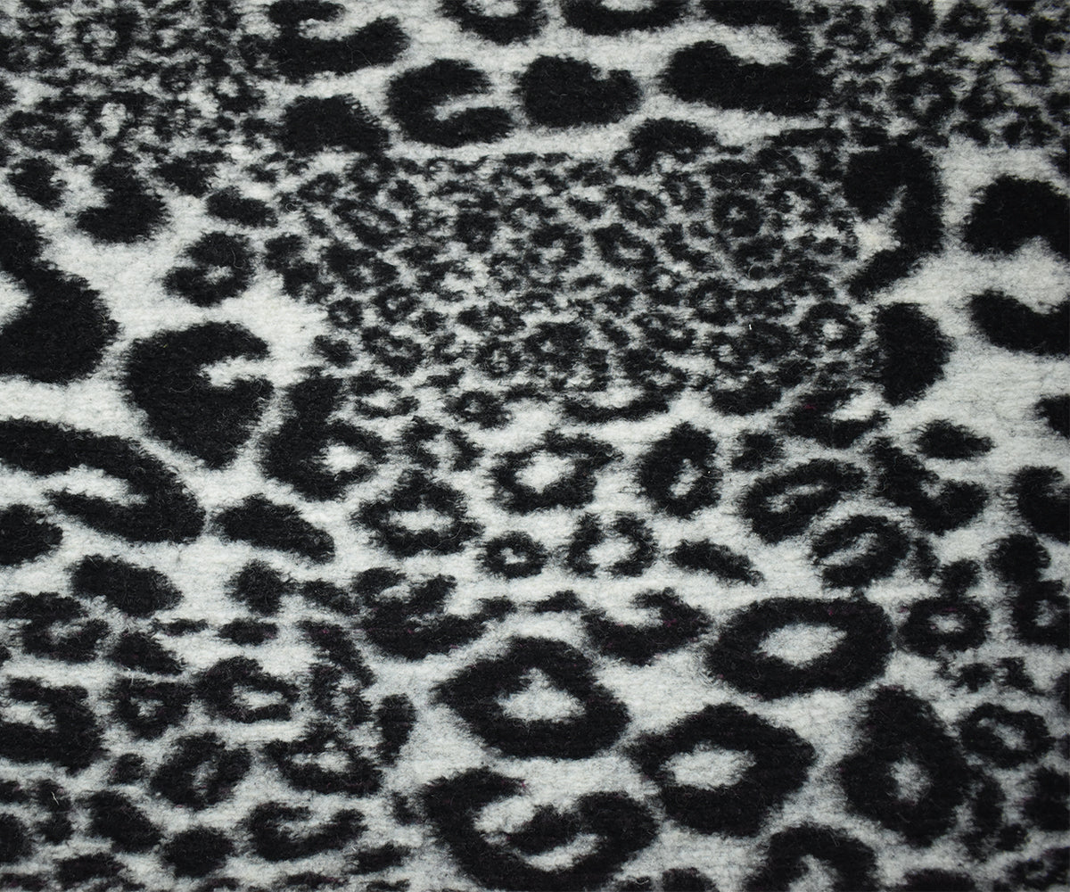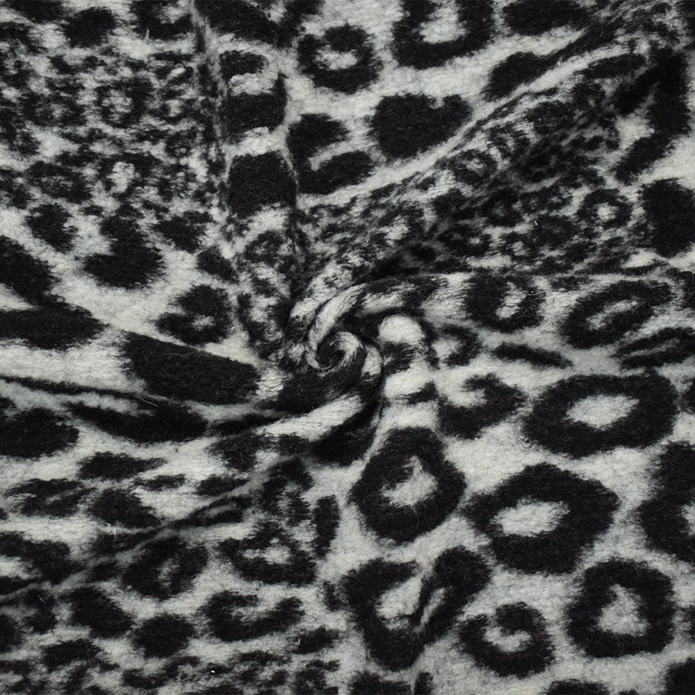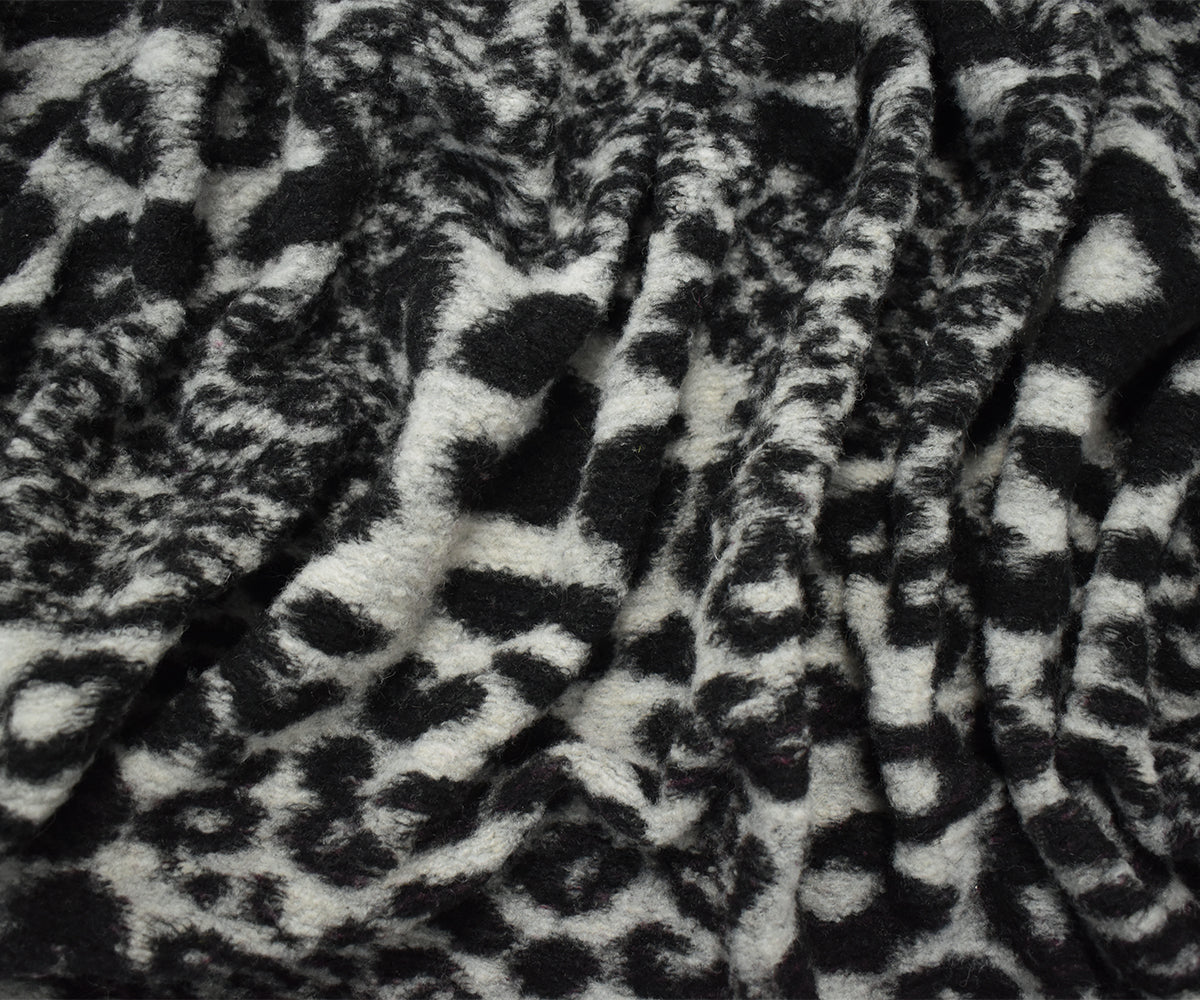 Black-White Italian Boiled Wool-Poly Cheetah Texture Knit Coating Fabric