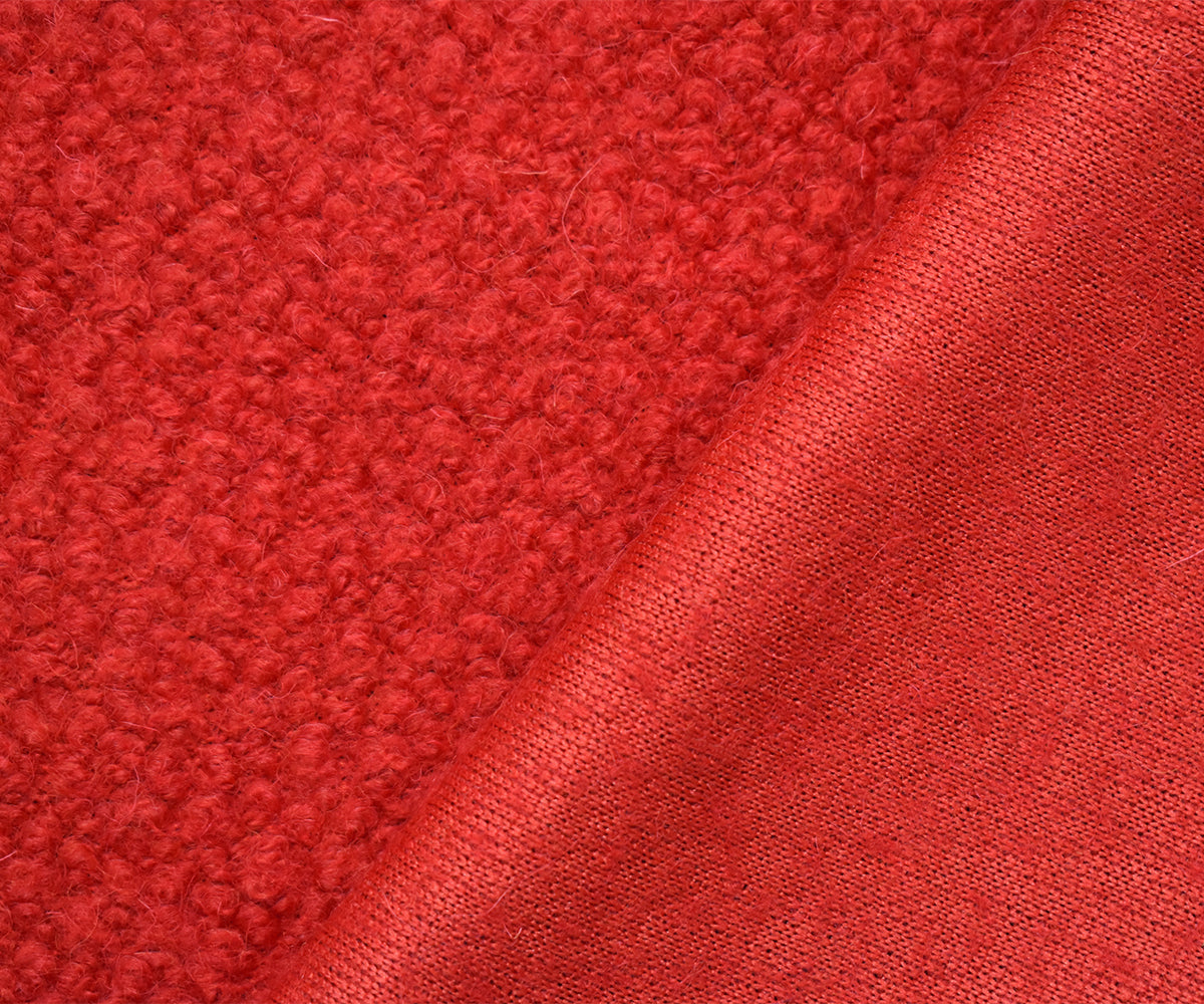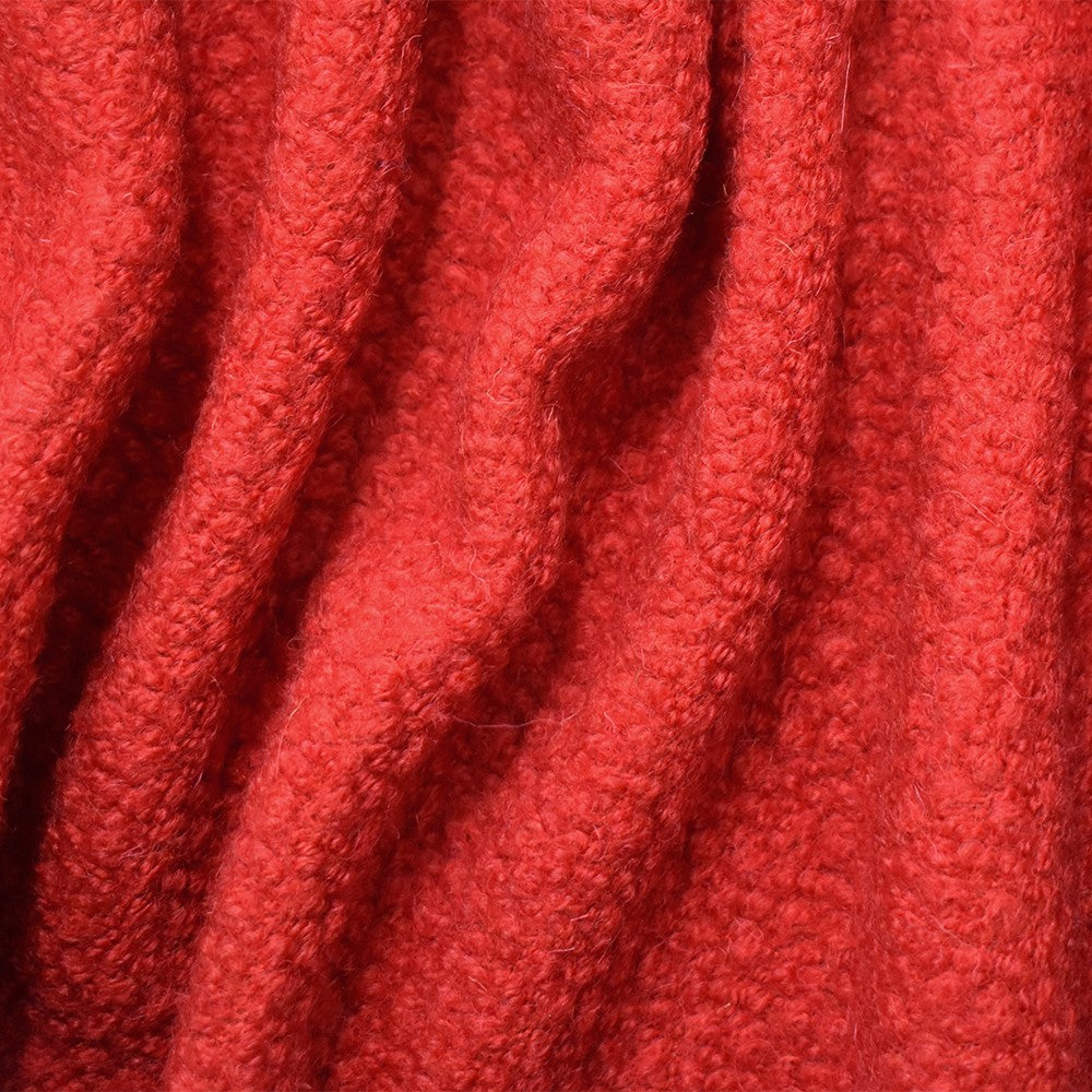 Red Wool-Poly Boucle Knit Fabric