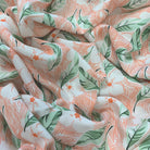 1 YD PC -Green, White, & Neon Orange Multi Floral Print Challis Fabric
