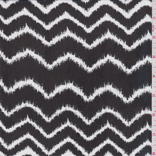Black and white horizontal flamestitch chevron print. This very lightweight, sheer polyester fabric has excellent drape.