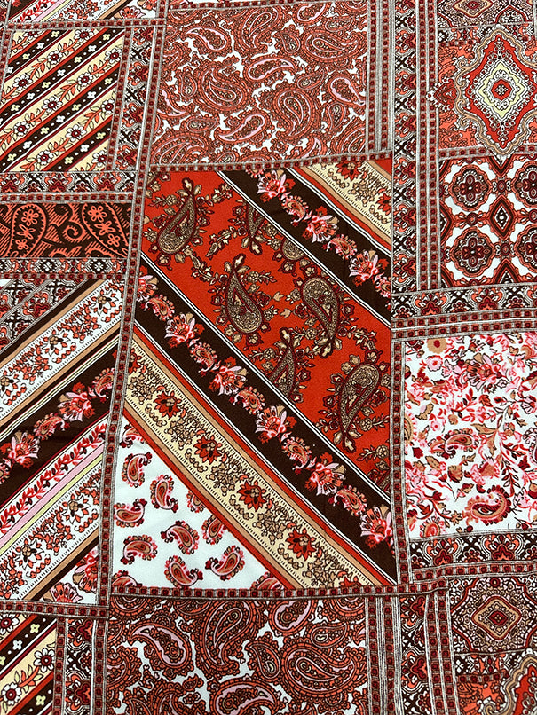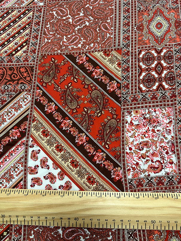2 1/8 YD PC -Pink/White/Brown/Coral Paisley Print Georgette Fabric
