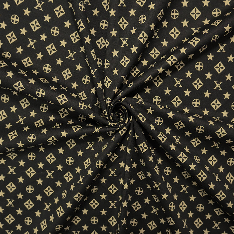 -This cotton-spandex poplin combines a modern geometric print of stars and diamond shapes with a comfortable stretch construction. The crisp finish makes it well-suited for contemporary streetwear and branded apparel.