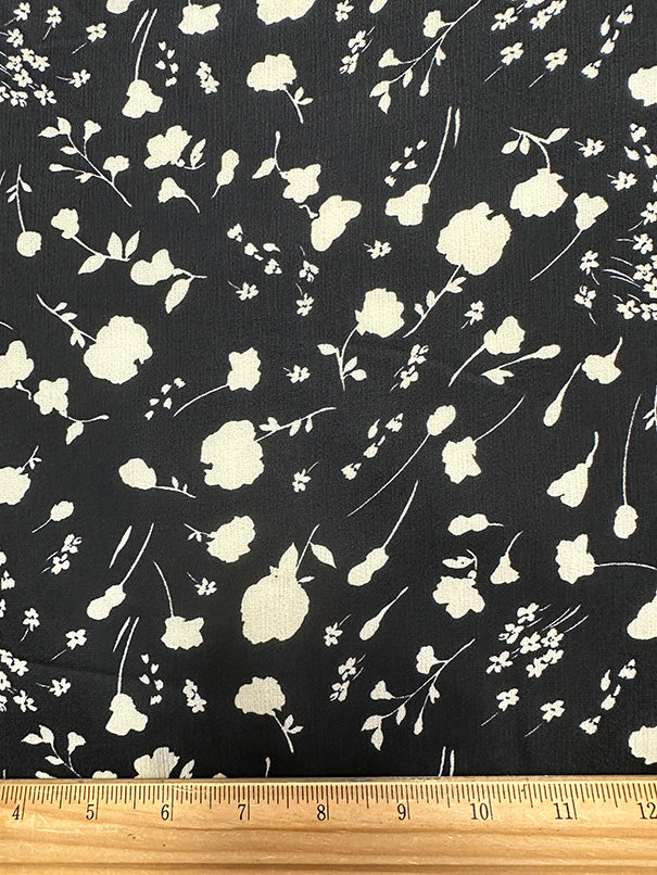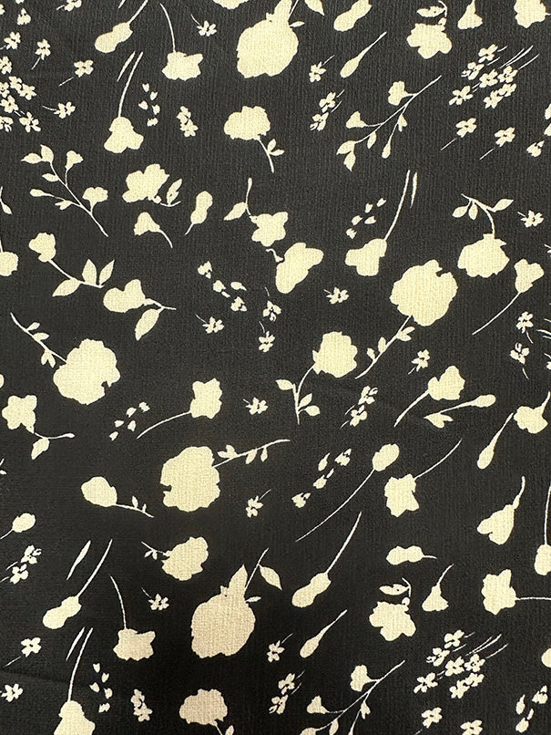 Black and Ivory Floral Silouhette Print High Crepe Fabric