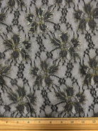 Black and Metallic Gold Floral Mesh Lace Fabric