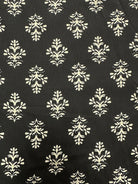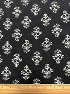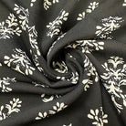 -Black and White Floral Medallion Poly Print High Crepe Fabric