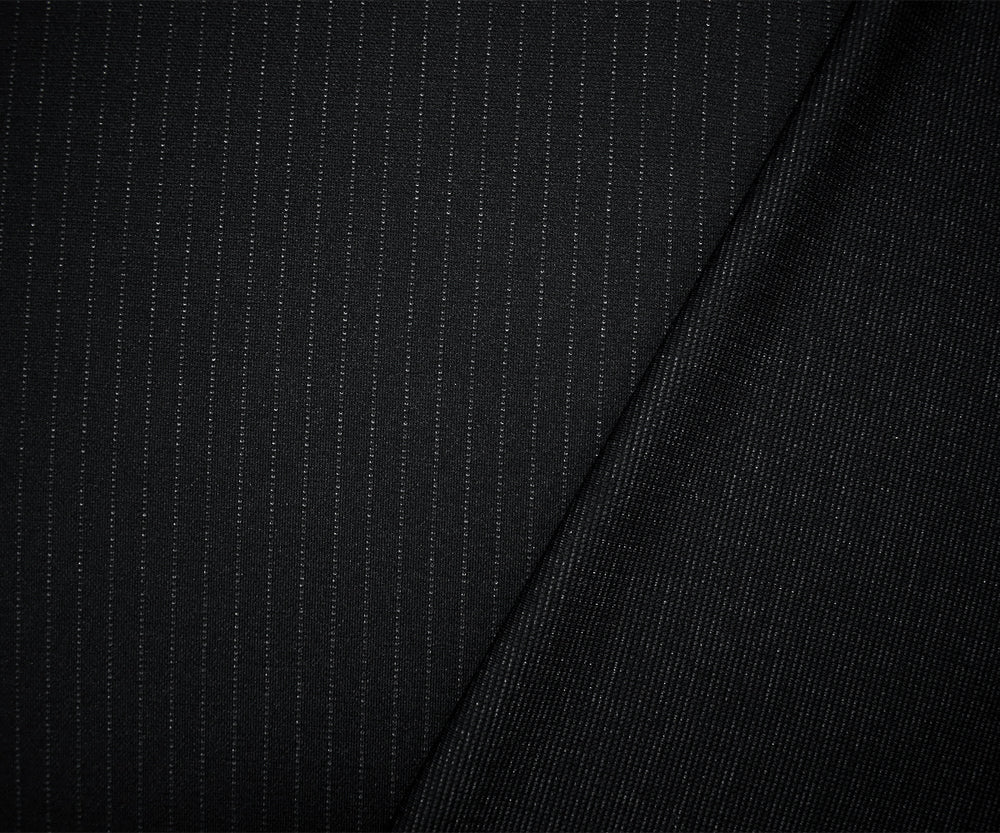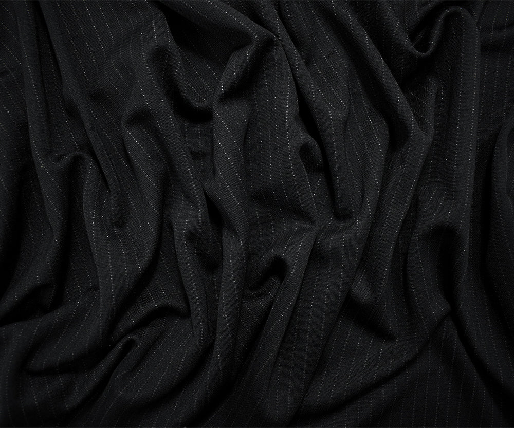Black-Gray Japanese Poly-Wool Blend Pinstripe Double Knit Fabric