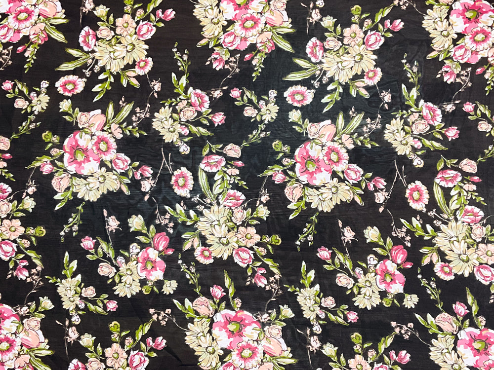 Black-Green-Multi Poly Floral Printed Chiffon Woven Fabric