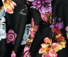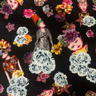 Black-Magenta-Multi Faces and Floral Printed Linen Woven Fabric