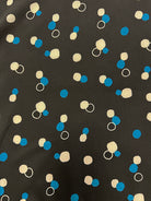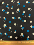 -Ivory & Turquoise Dot Print on Black Poly High Crepe Fabric