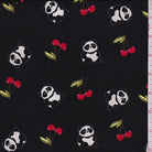 Black Panda/Cherries Double Brushed Jersey Knit Fabric