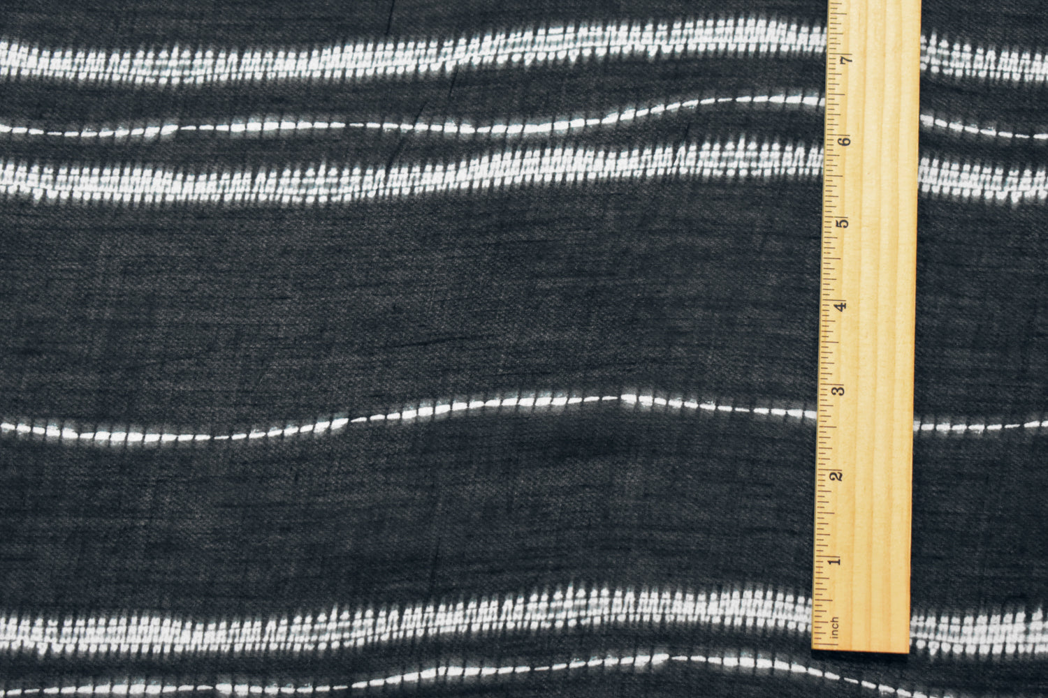 Black-White Cotton Tie Dye Horizontal Stripe Printed Batiste Woven Fabric